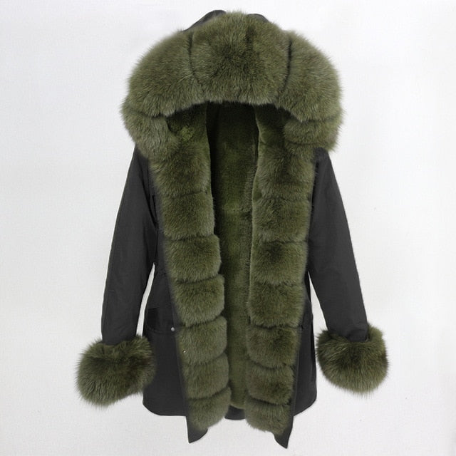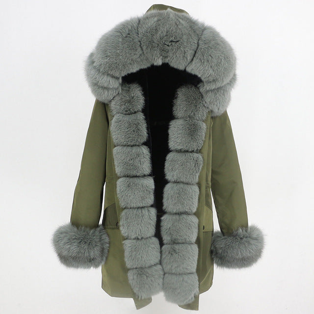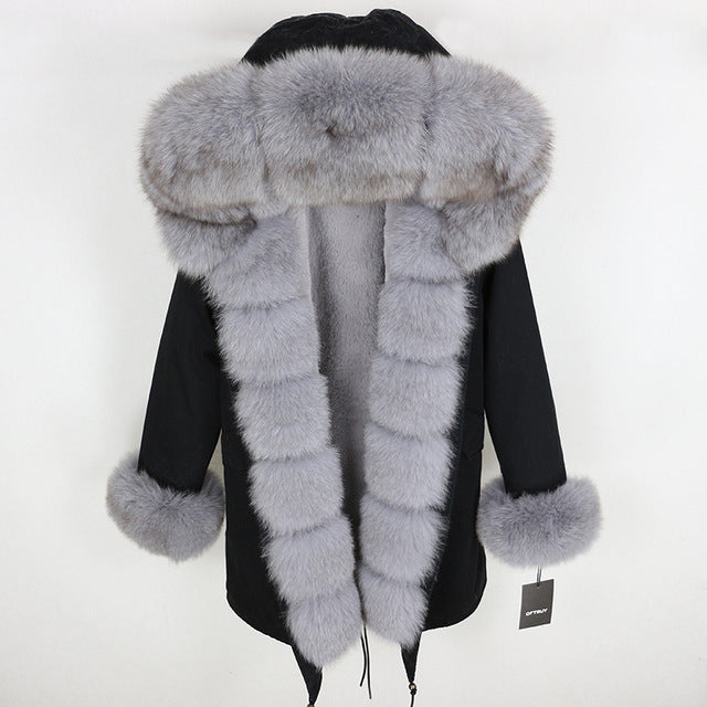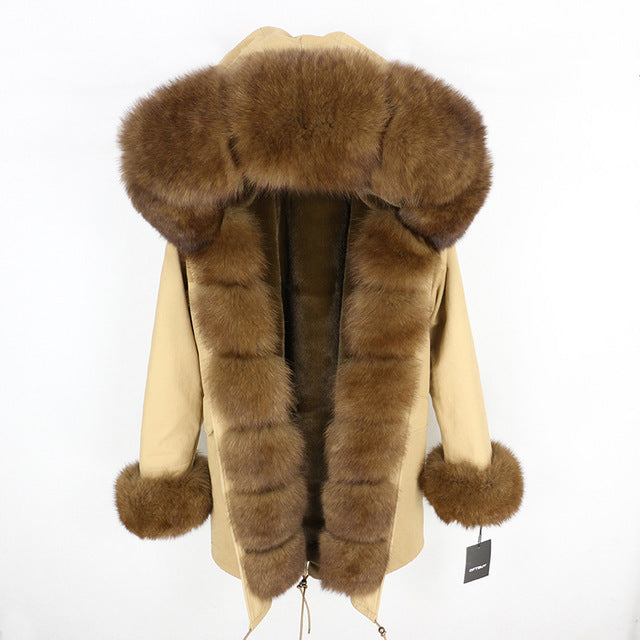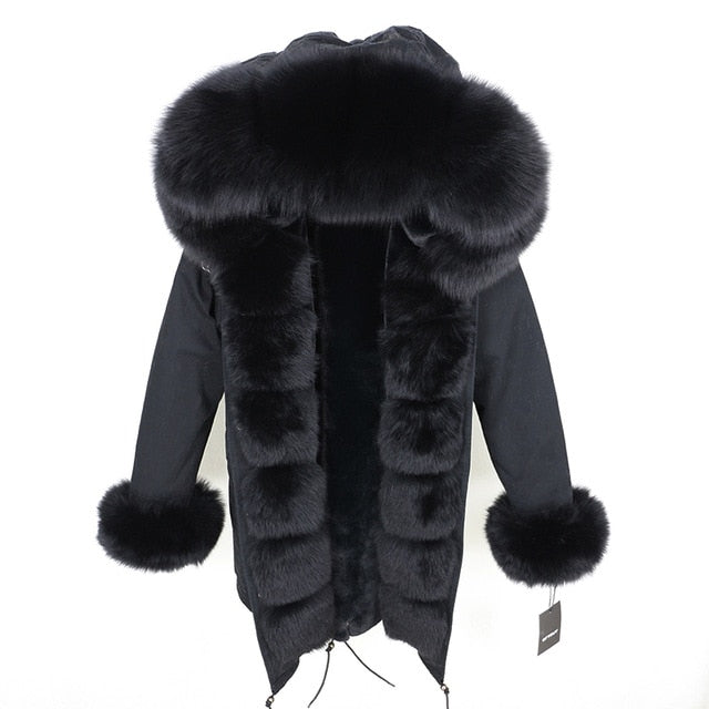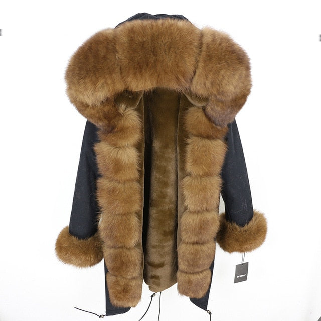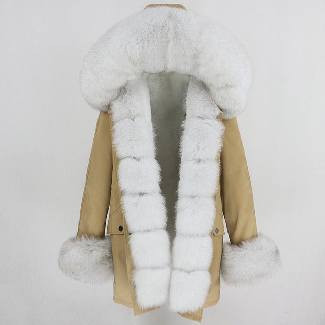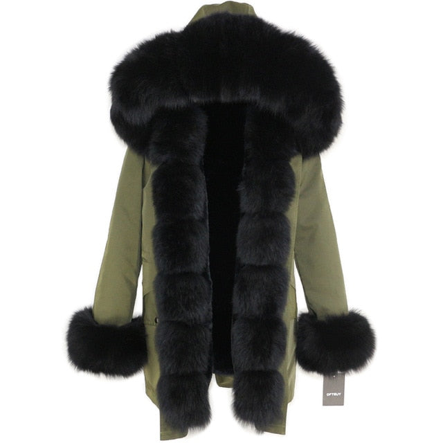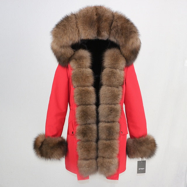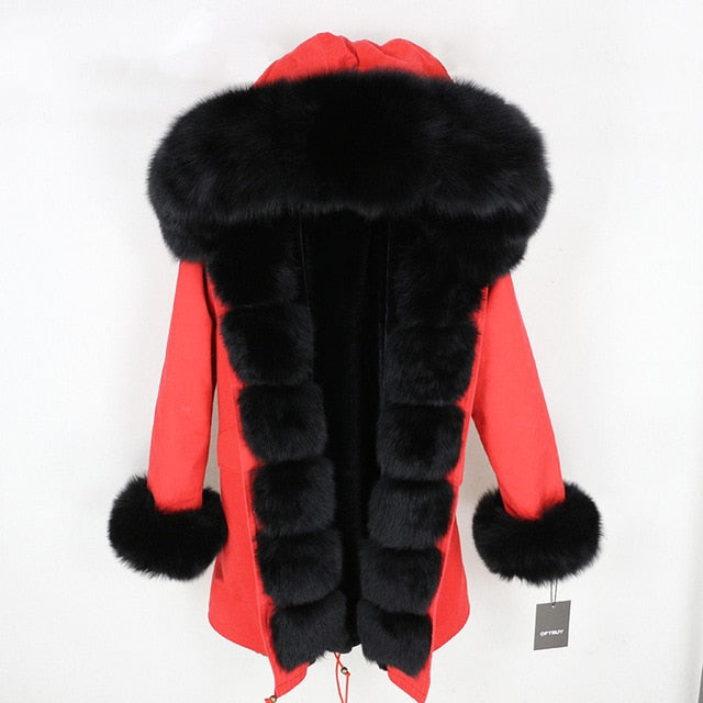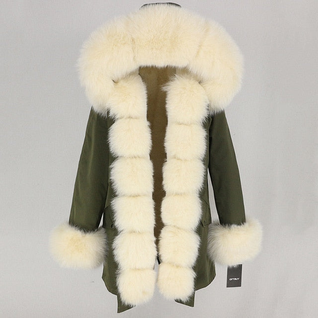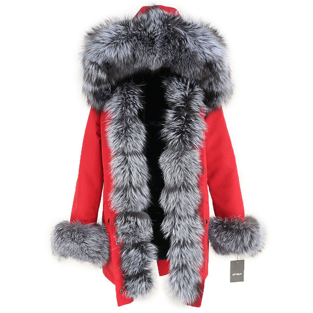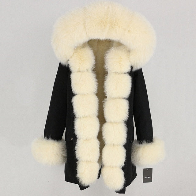 OFTBUY 2019 fashion winter jacket women real fur coat natural real fox fur collar loose long parkas big fur outerwear Detachable
